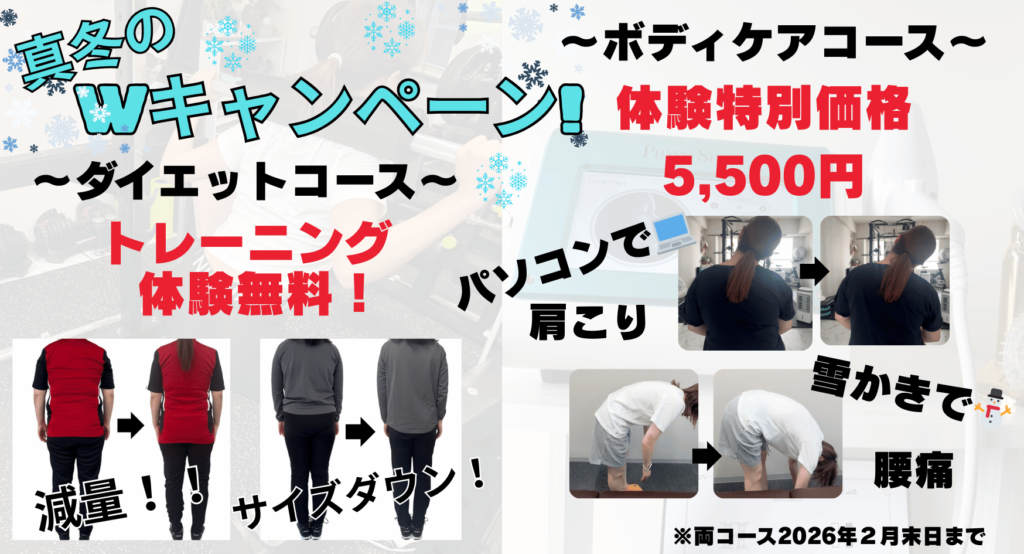 雪道で外を歩けない、、、。雪かきで身体が痛い、、、。北海道の厳しいシーズンこそ自分の身体を大事にしたい!そう思っている方は、今がチャンスです。